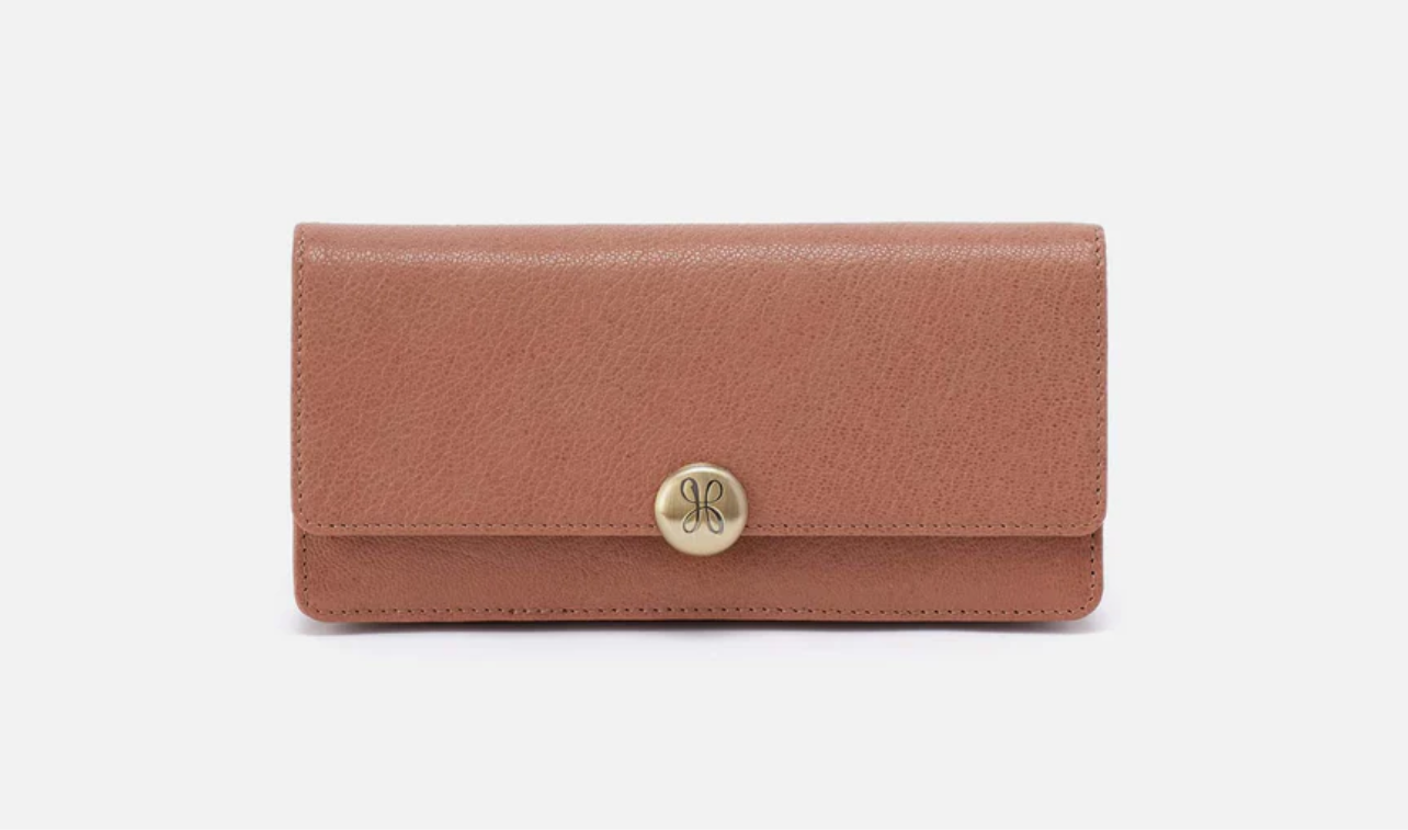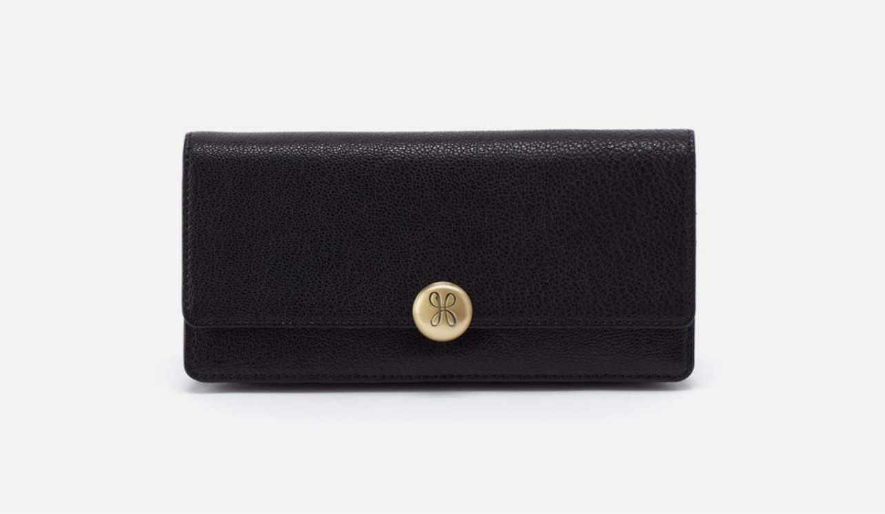 Large wallet in a micrograin leather. Two bill slots, 12 cards slots, zip pocket and magnetic snap closure.